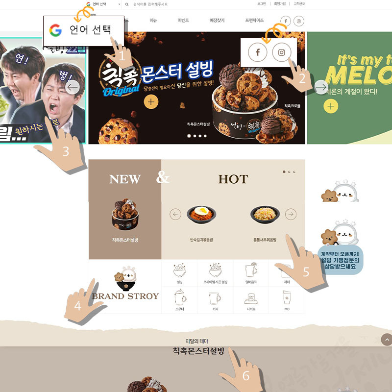 설빙 홈페이지의 가장 시그니처 페이지는 이 페이지가 아닐까 싶어요!